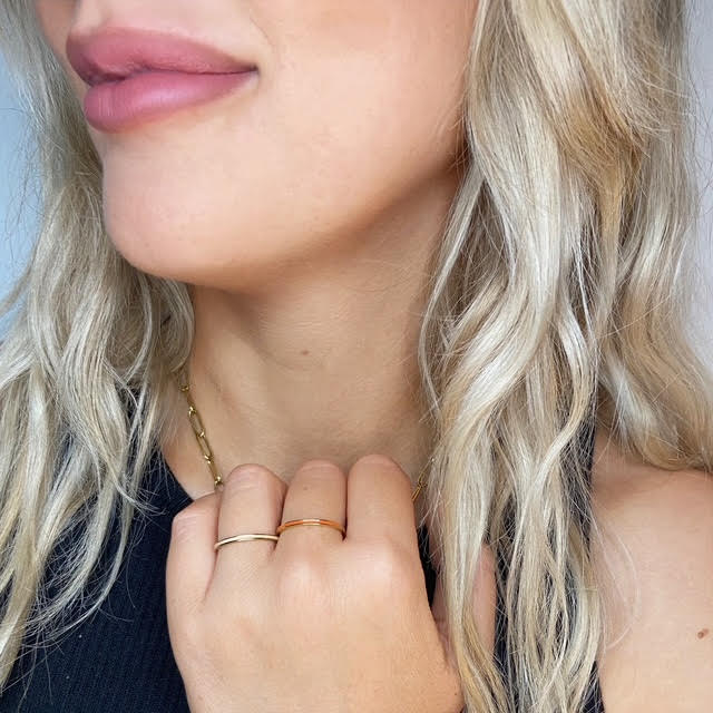 Due anelli minimal dal design raffinato, da indossare insieme o separati. Realizzati in acciaio inox chirurgico, sono waterproof, regolabili e ultra resistenti: non anneriscono e durano nel tempo.
