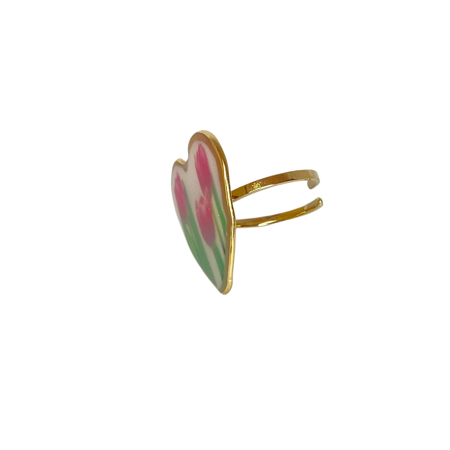 Petal Heart è l’anello perfetto per chi ama i dettagli romantici e femminili. Al centro, tre tulipani rosa smaltati racchiusi in un cuore dorato: simbolo di amore e rinascita. Realizzato in acciaio inox, è resistente all’acqua, non annerisce e si adatta facilmente a qualsiasi dito grazie alla struttura regolabile. Un tocco dolce ma deciso, da indossare ogni giorno con stile. 💗