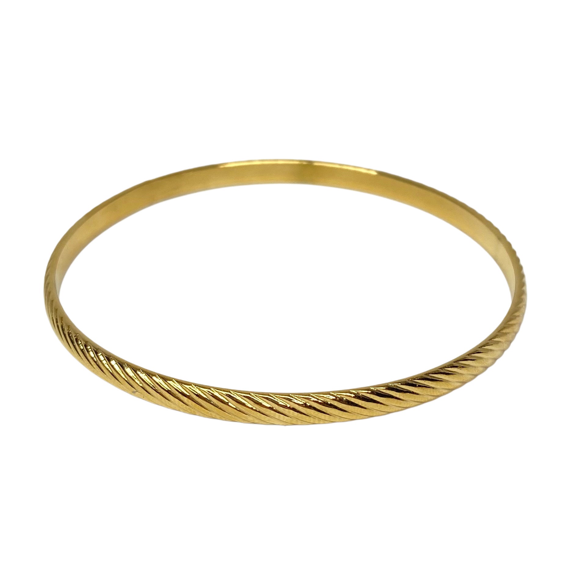 Scintilla con eleganza senza tempo grazie al bracciale Trinity Glow, un pezzo unico composto da tre cerchi rigidi in acciaio inox color oro, resistente all'acqua e progettato per non annerire nel tempo. Ogni cerchio ha uno stile distinto, ma insieme creano un'armonia perfetta. I tre cerchi sono separati ma inseparabili, uniti in un solo bracciale da infilare comodamente al polso senza chiusura. Il design rigido assicura stabilità e raffinatezza, perfetto da solo o abbinato ad altri accessori.