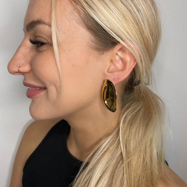 Gli orecchini Golden Drift sono una vera scultura da indossare, con la loro forma fluida e irregolare che cattura l’eleganza in movimento. Realizzati in acciaio inox chirurgico dorato, sono leggeri, ipoallergenici, resistenti all’acqua e non anneriscono mai. Perfetti per chi ama farsi notare con stile, si adattano sia a look minimal che più audaci. Aggiungili subito al tuo guardaroba e porta un tocco di sofisticata originalità in ogni occasione! ✨